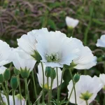 Floare anuală de câmp cu flori delicate, albe ca zăpada, pe tulpini subțiri.