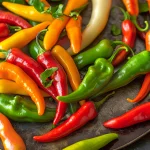 Selecție de diferite tipuri de ardei cu forme, culori și niveluri variate de iuțeală.