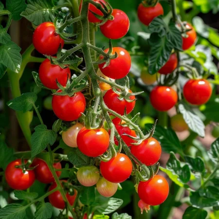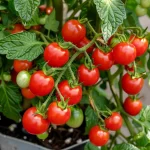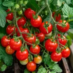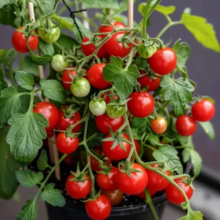 Tomate cherry compact, potrivit pentru cultivare în ghivece, balcoane și grădini mici.